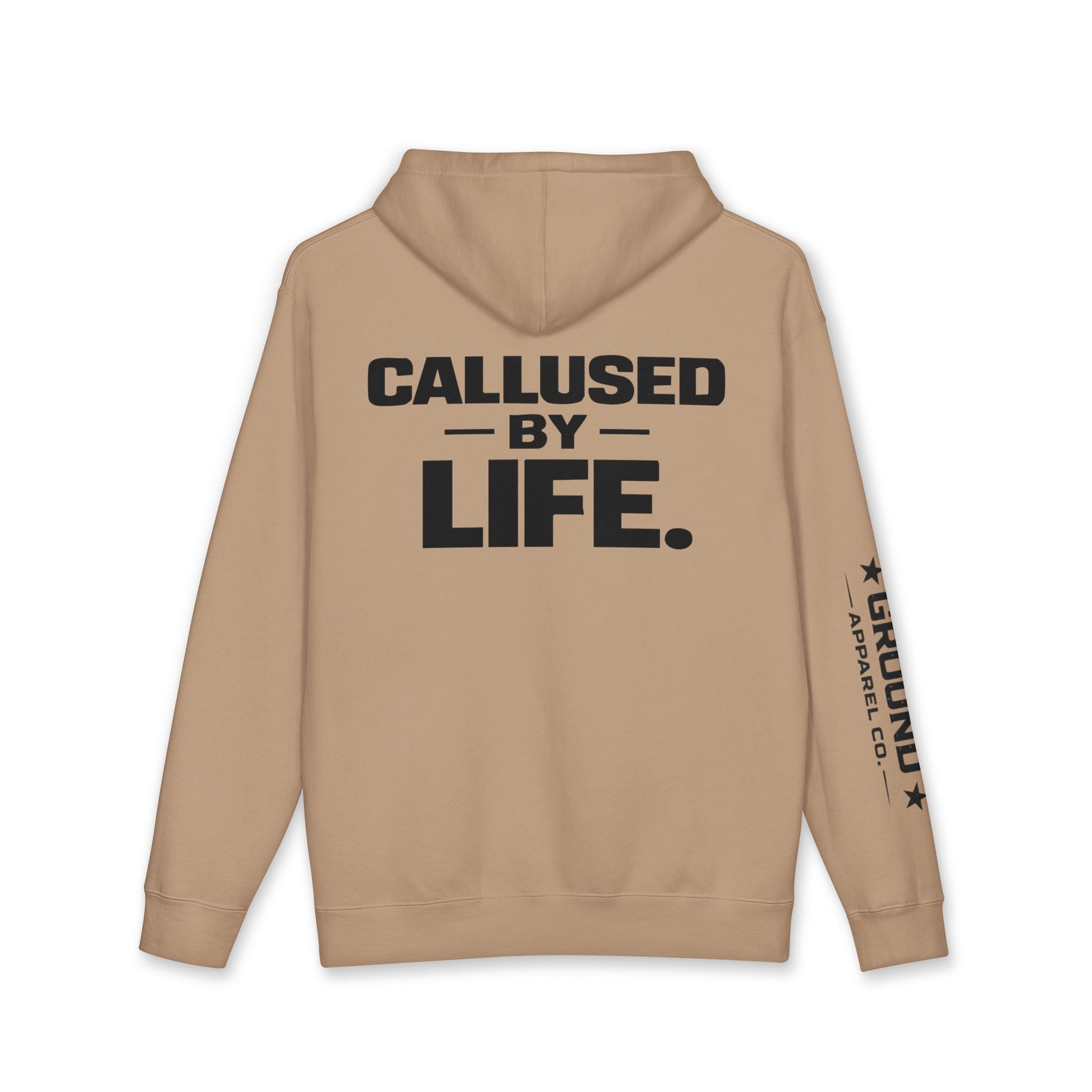 Callused By Life Hoodie — Tough Graphic Pullover with Sleeve Logos
